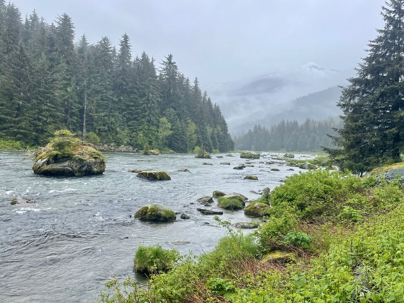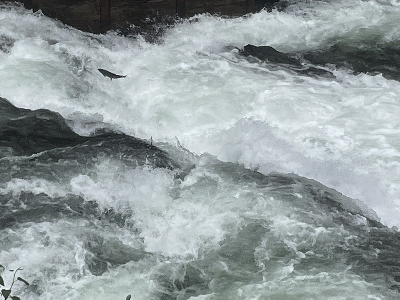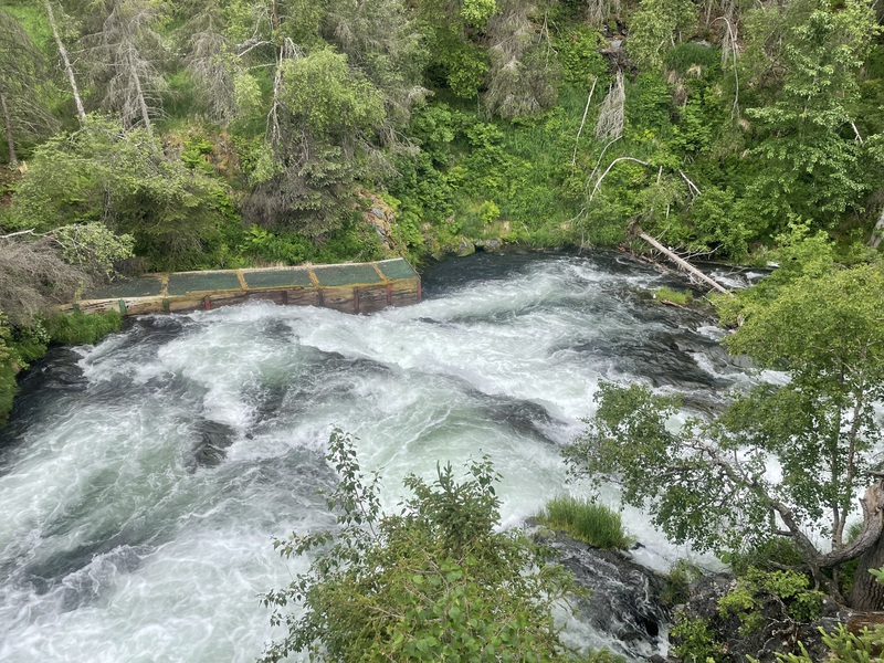 Unser nächstes Ziel war der Russian Lake und der Russian River Falls. An den Fällen kann man im August Bären beobachten wie sie Lachse fangen. Der Fluss hatte noch richtig viel Wasser und die Strömung machte den Lachsen zu schaffen.