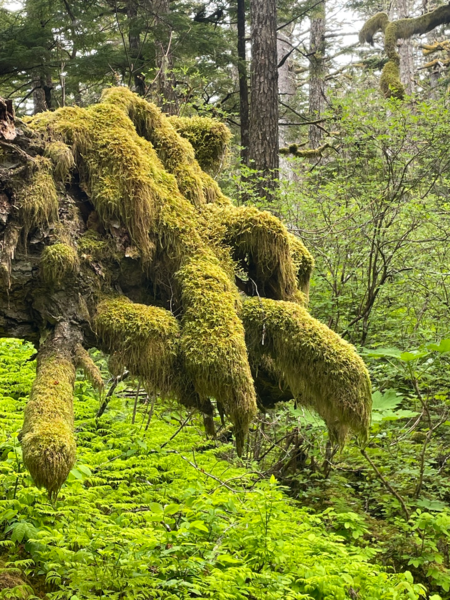 Wir machten eine Wanderung im Chilkat State Park, die uns durch den tollen grünen Regenwald bis zum Fjord runter brachte. Mittlerweile kam die Sonne und wärmte so richtig unsere ausgefrorenen Knochen der letzten Tage auf.