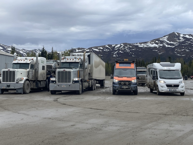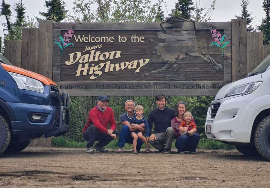 Das war unser Motto für diese Tour. Wir haben in Fairbanks alles notwendige eingekauft, auch unsere Reservekanister mit Diesel aufgefüllt. Und ab ging's auf den Dalton Highway, aber nicht alleine! Im Schlepptau unsere kleine Travelfamily!