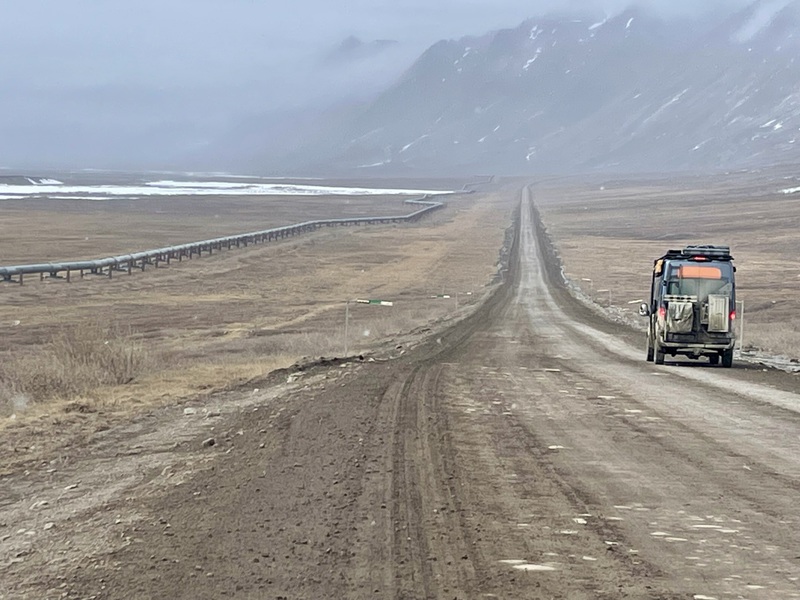 Dort gibt es auch ein Visitor Informationcenter. Der nette Ranger gab uns eine Broschüre über den Dalton Hwy mit; er verriet uns aber auch, dass die Toolik Field Station - eine arktische Forschungsstation, am 06.06.2025 Tag der offenen Tür hat. Das Wetter war genau richtig für unser Abenteuer!
