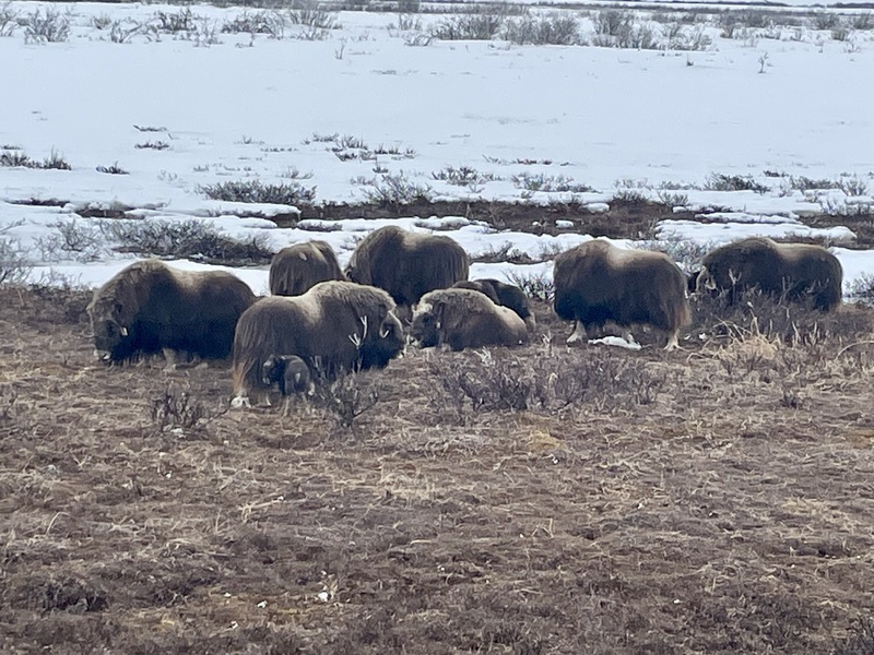 Langsam kamen wir dem Atigun Pass näher und das Wetter wurde winterlich. Temperaturen von -7 Grad Celsius und ein eisiger Wind machten uns schon etwas zu schaffen. Und plötzlich waren wir in der arktischen Tundra! Alles was es an wildlife zu sehen gab konnten wir auch bestaunen, einschließlich der selten gewordenen Moschusochsen. Der Tag in der Forschungsstation war richtig schön, es gab heißen Kaffee und Brownies, genau das richtige bei diesen kalten Temperaturen.