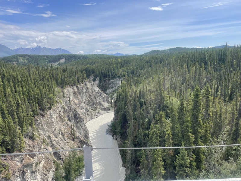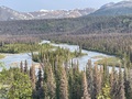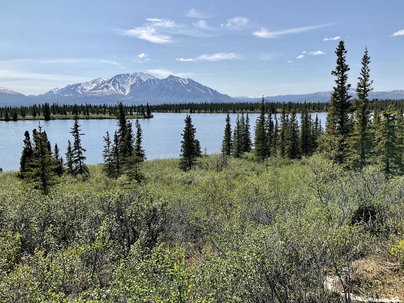 Weiter ging's auf unserer Abschiedstour in den Wrangell - Saint Elias National Park. Auf dem Richardson Hwy ging's wieder zurück, wieder vorbei an dieser herrlichen Natur, Richtung Glennallen irgend wann bogen wir dann rechts ab auf den Edgerton Highway. In Kenny Lake tankten wir noch mal, die Straße war noch geteert und in gutem Zustand, leider änderte das sich bald uns wir mussten im Zick Zack riesigen Schlaglöcher ausweichen. Und ab Chitina wurde es ganz übel; Waschbrett gespickt mit Schlaglöcher, sehr kurvenreich und wie auf einer Achterbahn. Aber die Landschaft einfach nur genial!
