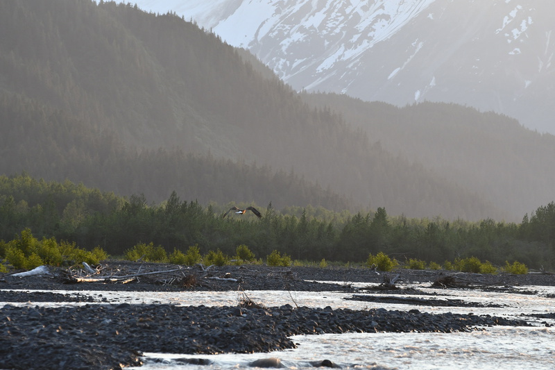 Wir verbrachten zwei ereignisreichen Tage auf der Kenai Fjords N.P.. Die beiden Nächte standen wir im Flussbeet unweit des Exit Gletschers.