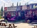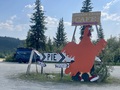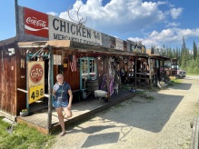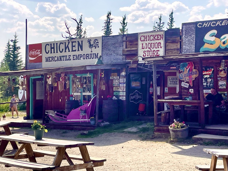Über den Taylor Highway ging's nach Chicken, ein verrückter Ort kurz vor der kanadischen Grenze. Zu den wilden Goldrauschzeiten lebten über 700 Leute in Chicken, heute hat der Ort null Einwohner! Lustig ist auch wie das Dörfchen zu seinem Namen kam! Die Goldwäscher setzten sich zusammen um ihrer Zeltstadt einen Namen zu geben. Da es in der Region damals sehr viele Schneehühner gab, auf englisch "Ptarmigan", sollte der Ort auch so heißen. Aber - die einfachen Leute konnten den Namen überhaupt nicht buchstabieren!