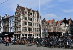 Wenn man zu Brügge hineinfährt sieht man als erstes die Wallanlage mit den Windmühlen. Brügge wurde nie durch einen Krieg zerstört und ist heute vollständig erhalten. Die Altstadt ist von Kanäle durchzogen, auf denen heute Touristenboote ihre Runden drehen. Am heutigen Sonntag war die Altstadt zum bersten voll mit Besuchern. Im Jahre 2000 wurde der mittelalterliche Stadtkern zum UNESCO Weltkulturerbe erklärt.