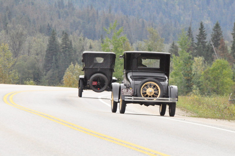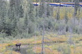 Über den Yellowhead-Highway 16 verlassen wir Jasper. Unser nächstes Ziel war der Mount Robson Park, mit 3954 m Höhe ist der Mount Robson der höchste Berg der kanadischen Rockies, und nach dem Pelzhändler Colin Robertson benannt. Wer den Mount Robson zuerst bestiegen hat, konnte bislang nicht abschließend geklärt werden. In Frage kommen eine Expedition aus dem Jahr 1909 von George Kinney und Donald Phillips sowie eine aus dem Jahr 1913, an der William Wasbrough Foster, Conrad Kain und Albert Mac Carthy teilnahmen. Sie erreichten am 31. Juli 1913 den Gipfel. Der Highway hatte einen breiten Seitenstreifen und war gut zu befahren, die Berge und Seen entlang des Hyw's waren großartig. Nach dem wir den 1131 m hohen Yellowhead Pass überwunden hatten ging es auf einer langen Abfahrt hinunter zum Campground unweit des Visitor-Centers. Am nächsten Morgen regnete es und der Mount Robson war komplett in Wolken eingehüllt. Im Visitor-Center erfuhren wir, dass das schlechte Wetter längere Zeit anhalten sollte, daher entschieden wir uns weiter zum Cariboo-Highway zu fahren. Der Rocky Mountaineer ist eine der Legenden Kanadas; in unzähligen Naturfilmen spielt er die Hauptrolle bei der Fahrt durch die Rockies. Für Elche sind die Sümpfe und kleinen Seen entlang des Highways ein Paradies, Autofahrer müssen auf die bis zu 800 kg schweren Tiere immer einen Blick werfen. Das ultimative Foto unserer Kanadareise gelang uns, als der Rocky Mountaineer an uns vorbei fuhr und im Vordergrund eine Elchkuh stand.