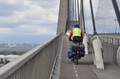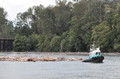 Vom Grenzübergang zwischen den USA und Kanada ging es über Langley, Surrey, New Westminster und Richmond nach Vancouver. Zunächst verlief alles recht problemlos, doch je weiter wir Richtung Downtown kamen, um so komplizierte wurde es. Wir mussten über einige Brücken, die Anfahrt zur Alex-Fraser-Brigde war besonders schwierig zu finden. Dank ortskundiger Radfahrer fanden auch wir den richtigen Weg. Auf dem Fraser-River wird immer noch Holz transportiert, wendige Schlepper ziehen riesige Flösse aus Baumstämmen den Fluss entlang zu den Sägewerken.