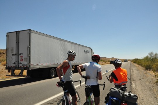 Selbst auf den Interstates war Zeit für einen Smalltalk. Abends trafen wir uns dann wieder auf den Hiker / Biker Campgrounds und tauschte unsere Erlebnisse aus.