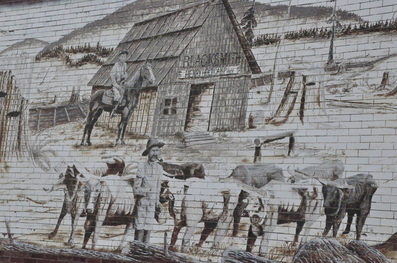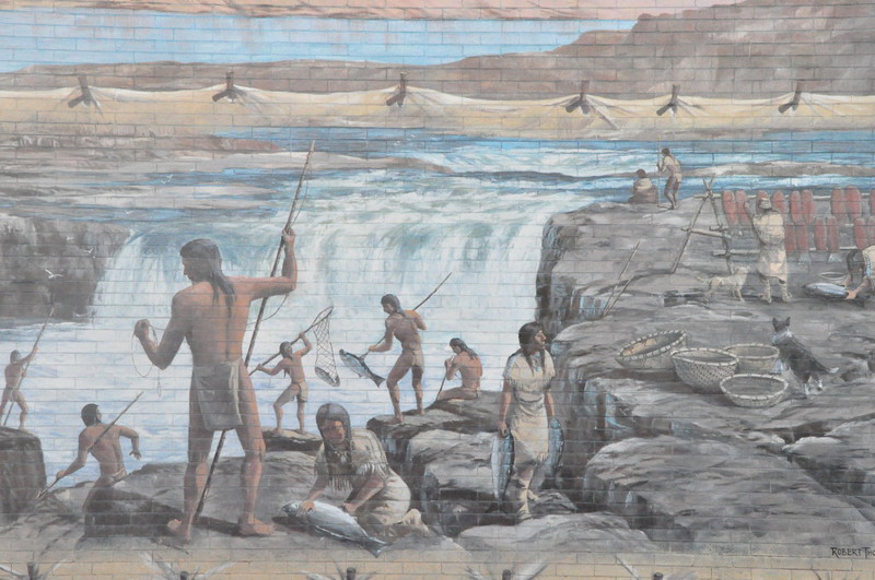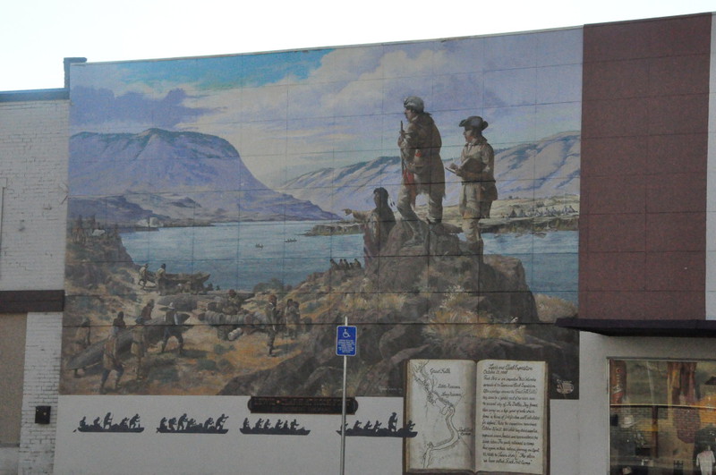 Von den ersten Siedlern die das Land vom Osten her eroberten, zeugen die Wandbilder in der Stadt The Dalles, WA, entlang des Oregon Trails und Columbia Rivers.