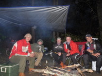 Abends kamen wir durchnässt und erschöpft auf dem Twin-Habor-Campground an, wo wir Zeke, Adrian und Michael trafen. Sie luden uns spontan zu sich ans Lagerfeuer ein, wo wir uns in gemütlicher Runde bei ein paar Bier entspannen und aufwärmen konnten.
