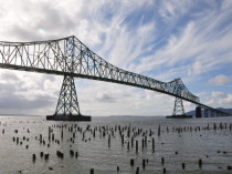US-Staaten Washington und Oregon, die durch den Columbia-River markiert wird. Von seiner Quelle im Columbia Icefield in den kanadischen Rocky-Mountains, muendet er nach mehr als 2000km Laenge bei Astoria in den Pazifik. Ueberspannt wir er von der Columbia-Brigde, mit 7 KM die laengste der Tour. Als wir sie sahen schnellte uns der Puls auf 180 hoch: sie vermittelt aufgrund ihrer schieren Länge ein einzigartiges Fahrgefuehl.