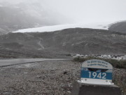 Das Columbia Icefield verhuellte sich in dichten Wolken, und die sehr hohen