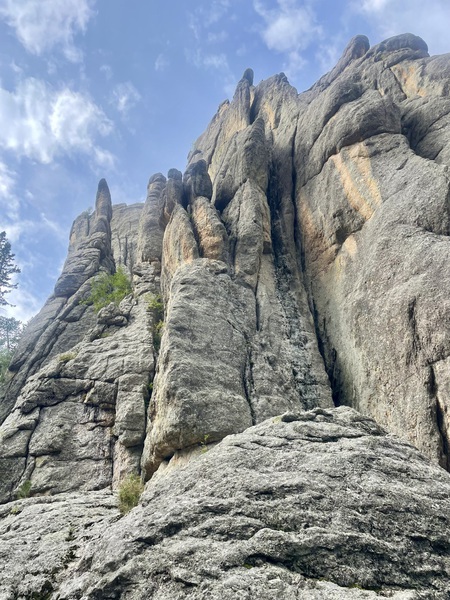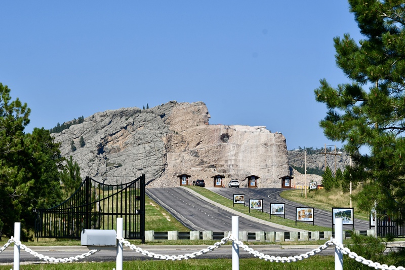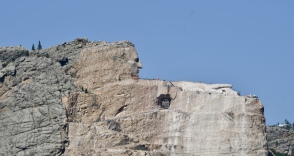 Crazy Horse, der die Schlacht gegen General Custer und seiner Armee am Little big Horn gewann. Seit 1948 wir er in den Fels gemeiselt! Bisher sind der Kopf, der Arm und die Hand zu sehen, der Felsdurchbruch der für das Pferd gebraucht wir ist auch schon vorhanden. Doch bis dieses Mammutprojekt fertiggestellt ist, werden noch viele Jahrzehnte ins Land gegen.