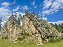 Außer Prärie Dog und Bisons, die die Hitze gut abhaben können, waren keine anderen Tiere in Sicht. Die erste Nacht verbrachten wir auf dem Sage Creek Campground, der sehr einfach aber sehr schön ist. Vor uns stand ein Van aus Colorado, mit den Locals kamen wir sofort ins Gespräch.