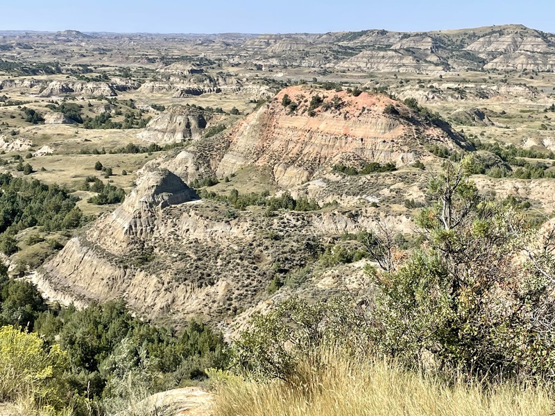 Theodore Roosevelt war bereits Politiker als er sich seine zweite Farm in Dakota aufbaute, er war von dem Gedanken besessen einen freilebenden Büffel zu erlegen! Als er dieses Vorhaben in die Tat umsetzte, reiste er nach North Dakota war von der Landschaft so fasziniert, dass er später als Präsident diesen Nationalpark gründete. Seine Farm lag zwischen dem Süd- und Nordteil des Parks. Seine Farm wurde jedoch bei einem Unwetter zerstört und seine Bisonherde in alle Himmelsrichtungen zerstreut. Heute leben noch ein paar Nachfahren dieser Herde im Park. Longhorn Stiere, Wildpferde und einige große Büffelherden, die auch morgens gern mal den Campingplatz besuchen. Beinahe hätten wir den Park nicht besucht, da viele sagen er ist wie der Badlands N.P. Das ist auf keinen Fall so! Wie alle National Parks ist er ein Naturwunder und auf jeden Fall einen Besuch wert.