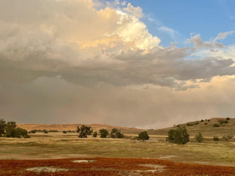 Doch dann um 20 Uhr ging es los, um uns herum heftige Gewitter, eine Rangerin raste mit Blaulicht und Sirene auf den Campground und forderte uns auf diesen zu verlassen. Im Badland National Park ist ein Feuer ausgebrochen und wir mussten fliehen!