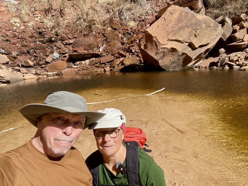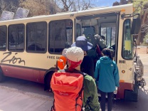 Unseren "Dicken" Liesen wir am Visitor Center stehen, stellten uns in die Schlange für den Free Shuttle zum Trailhead, denn wir wollten den Trail zu den Emeraldpools laufen. Es ging gleich mit einer heftigen Steigung los, nach und nach schraubten wir uns in die Höhe. Am Upper Pool angekommen machten wir unsere Frühstückspause, danach wieder gleichen Weg zurück.