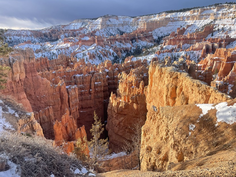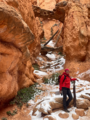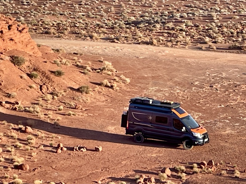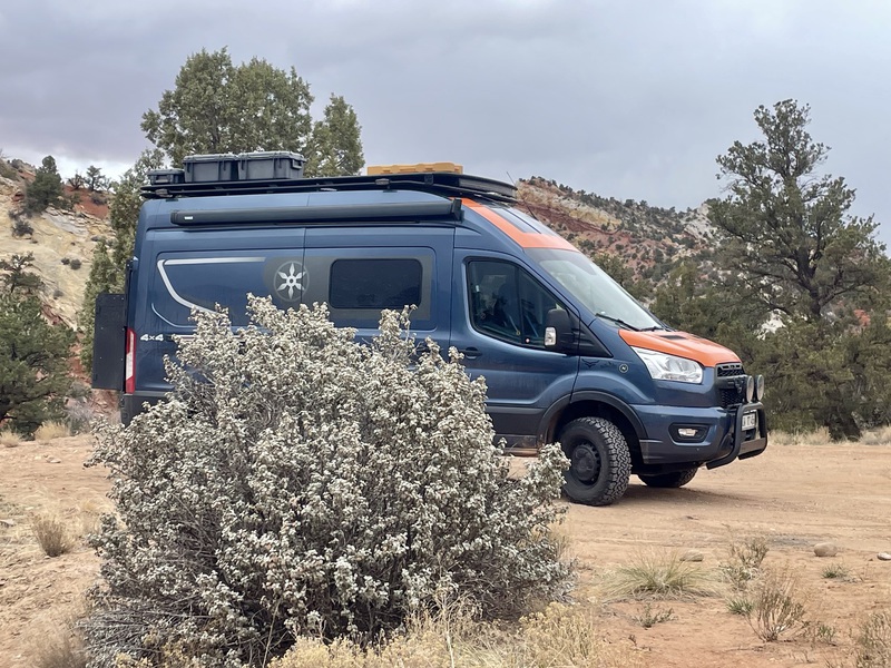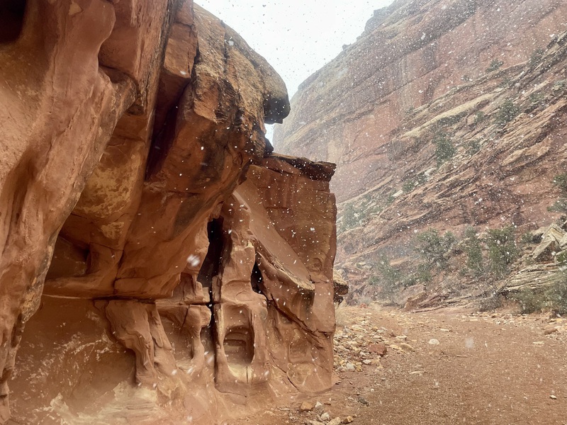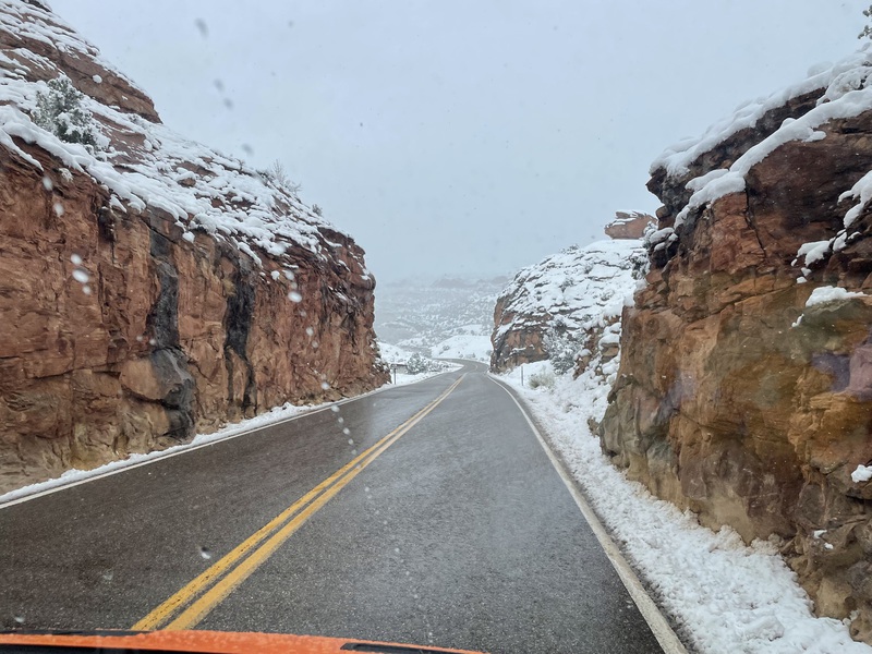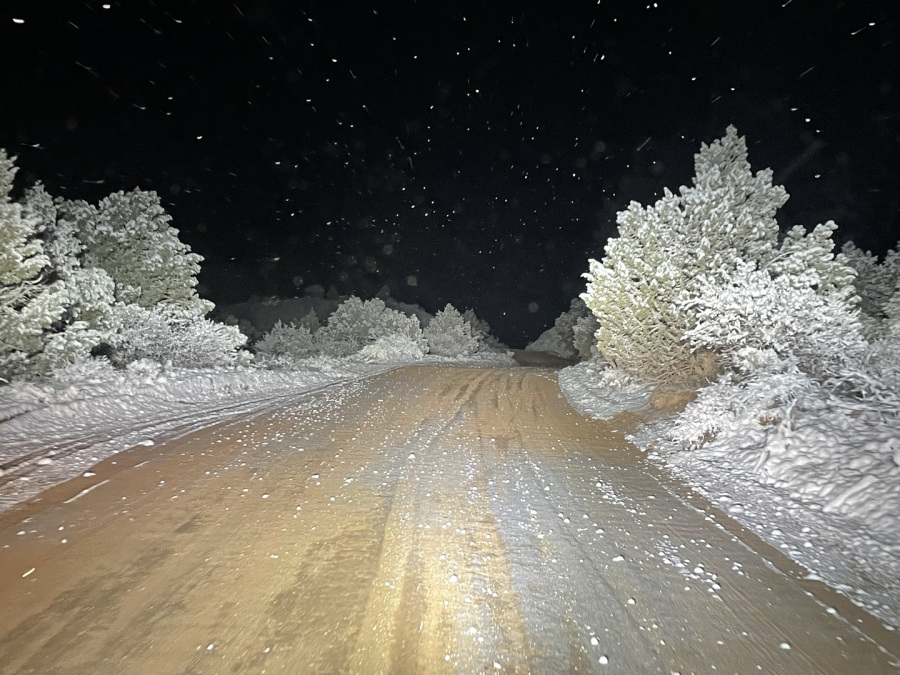 Trotzdem wagten wir es auf die Offroad Piste, eine tolle Landschaft offenbarte sich uns. Bei den Cottonwood Narrows fanden wir einen richtig tollen Stellplatz für die Nacht. Gegen 23 Uhr begann es erneut zu schneien, deshalb fuhren wir am nächsten Tag um 4 Uhr in der Früh wieder raus, und das war gut so!