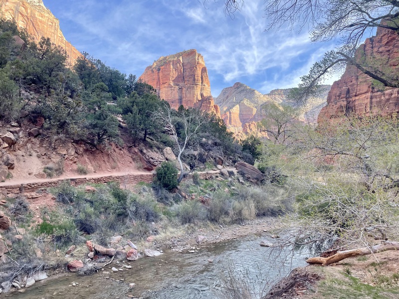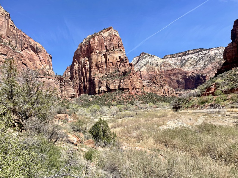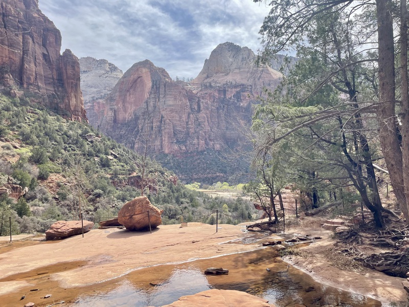 Bevor wir wieder in den Shuttlebus einstiegen genossen wir noch den kurzen Trail Richtung Angels Landing, dem wohl bekanntesten und schwierigsten Trail im Park!