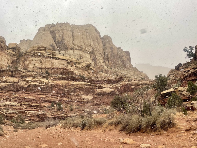 zwischen Escalante und Boulder: Schneesturm auf 2950 mtr. Höhe