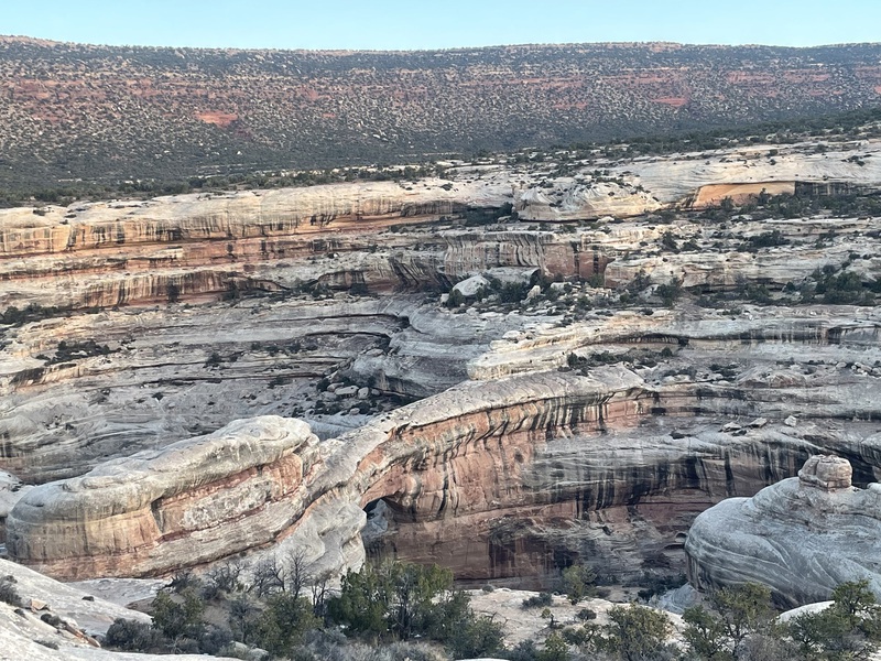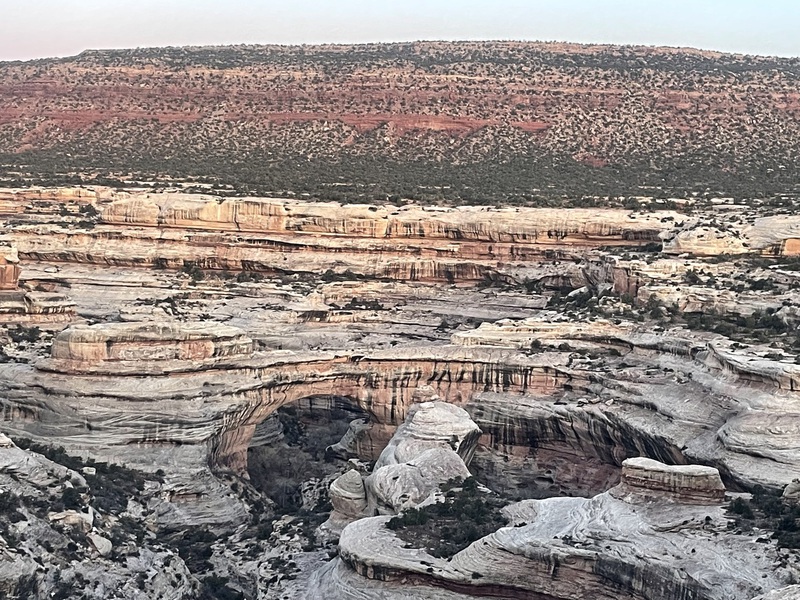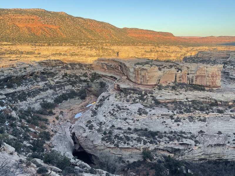 Ein Panoramaloop von über 14 Kilometer Länge schlängelt sich entlang der Highlights. Wir entschieden uns schon sehr früh, um 7 Uhr Morgens, die Runde zu drehen. Die Wanderung zur Owachomo Brigde hatte uns sehr gut gefallen.