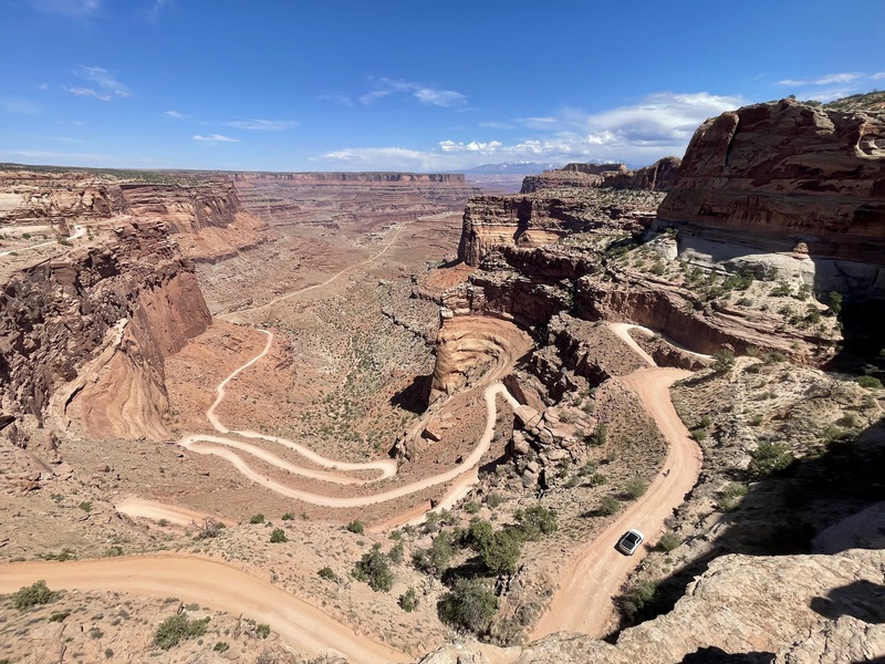 Im Park ist auch der legendäre "Shafer Trail", eine Off-Road-Strecke die über unzählige Switchbacks in den Shafer Canyon führt.