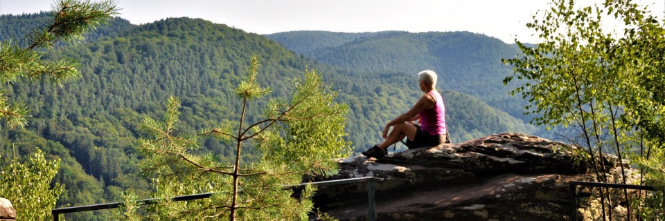 Auf der 2 Hälfte der Tour geht's vorbei an der Klausenhöhle zur Genovevahöhle, beides tolle Sandsteinausspülungen, die schon in der Steinzeit den Menschen als Unterschlupf dienten.