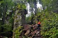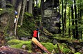 Die interessante Tour startet am Besucherzentrum und geht zunächst hinnunter in den Ort Prümzurlay, zuvor kommt man jedoch zu der alten Holzbrücke über die Prüm, bei den Irreler Wasserfällen. Nach dem Ort beginnt der steile Anstieg hinauf zur Teufelsschlucht. Der Felsenpfad beeindruckt durch die Felswände die senkrecht in den Himmel ragen und windet sich durch enge Felsspalten und Durchbrüche. Doch das Highlight ist die Teufelsschlucht 35 mtr. hoch und so eng, dass sich der Fels über einem schon fast wieder schließt. Neben dem Dinopark für Kinder ein geheimnisvolles Erlebnis.